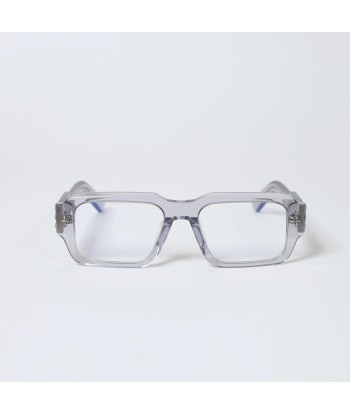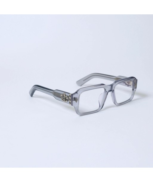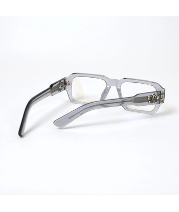 Semi-transparent smoke-gray frame with bold, thickset rectangular rims
