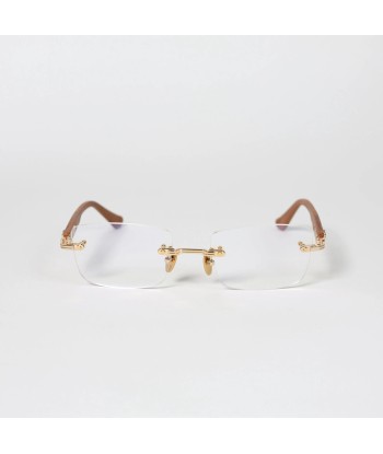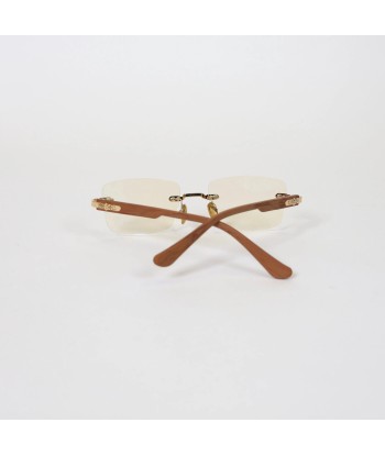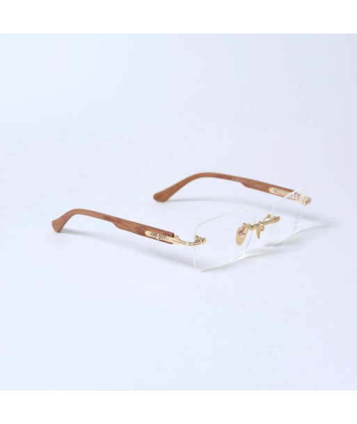 Warm wood-tone temples paired with polished gold hardware—natural yet refined